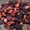 Preparare: într-un vas acoperit, două măsuri de mix de fructe pentru fiecare 200 – 250 ml apă plată clocotită.